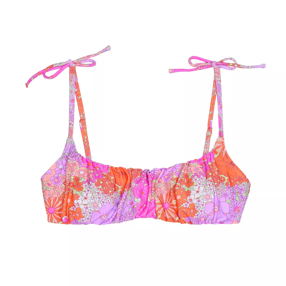 Splish and splash in style when you choose this juniors’ shirred square bikini top by Ninety-Nine Degrees°.