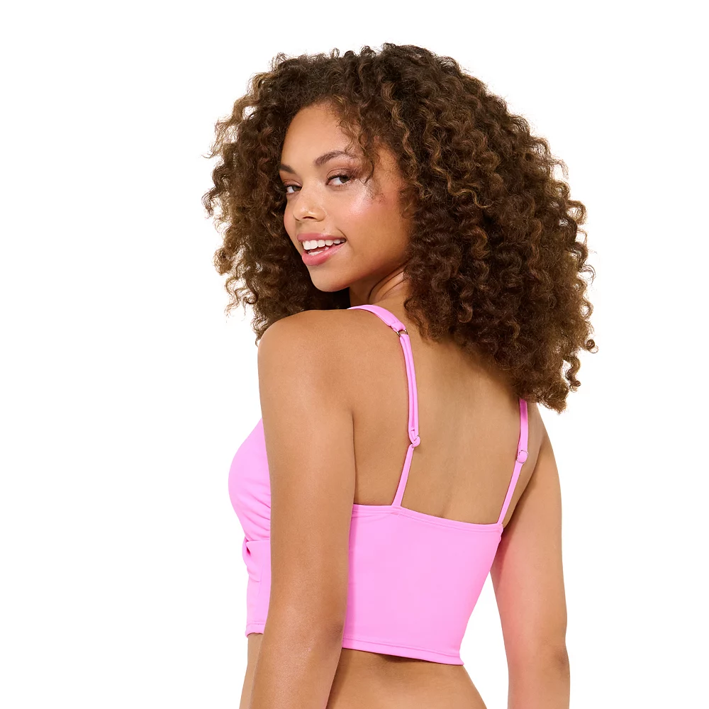 Splish and splash in style when you choose this juniors’ twist crop tankini top by Ninety-Nine Degrees°.