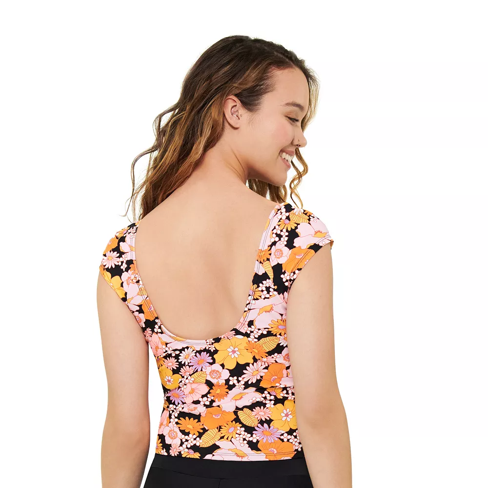 Add unique style to your swim wardrobe with this juniors’ Ninety-Nine ° tankini top, featuring cap sleeves and a crop design.