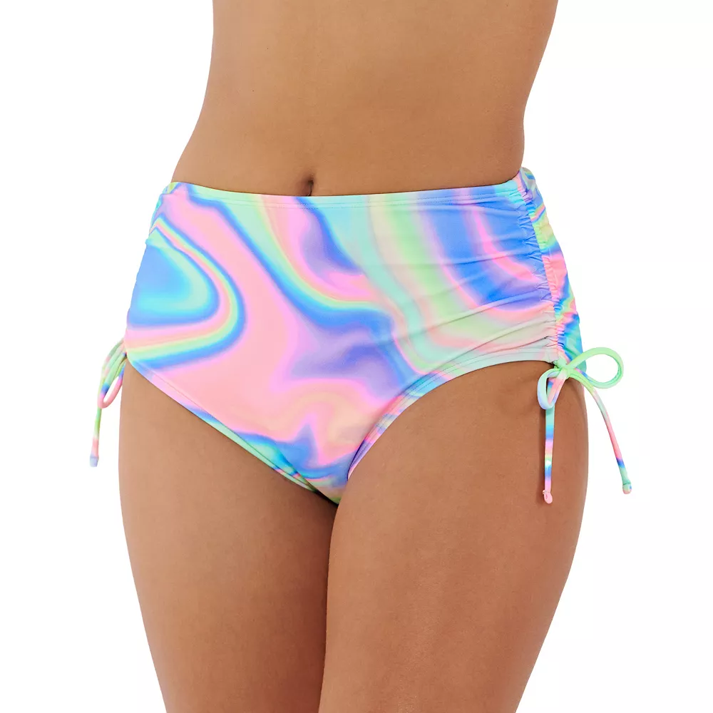 A high-waisted, cinched design makes this juniors’ Ninety-Nine ° swim bottoms a fun poolside choice.