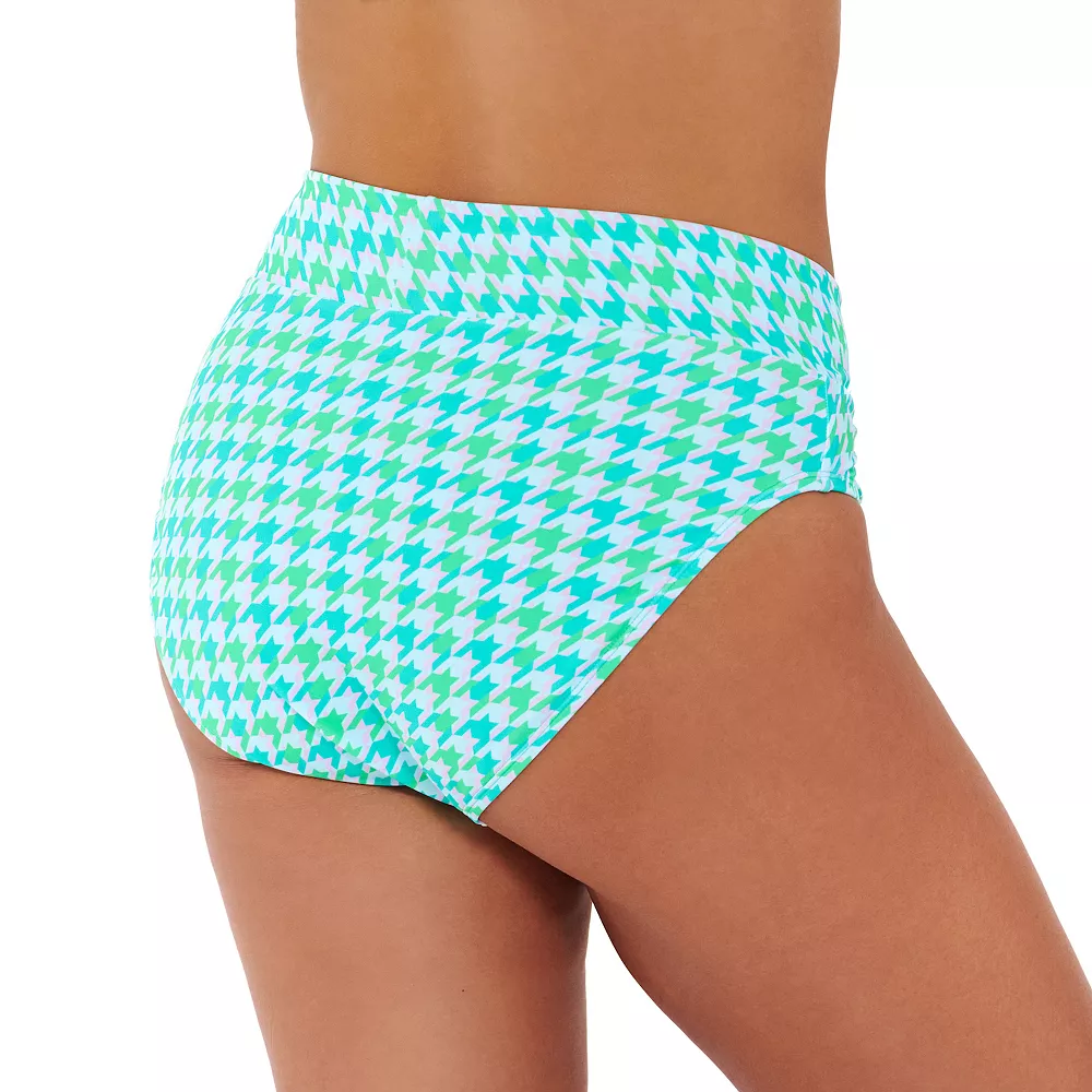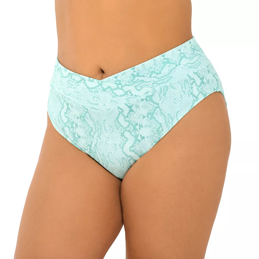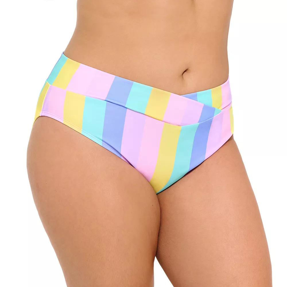 A high-waisted, cheeky design makes this juniors’ plus size Ninety-Nine ° swim bottoms a fun poolside choice.