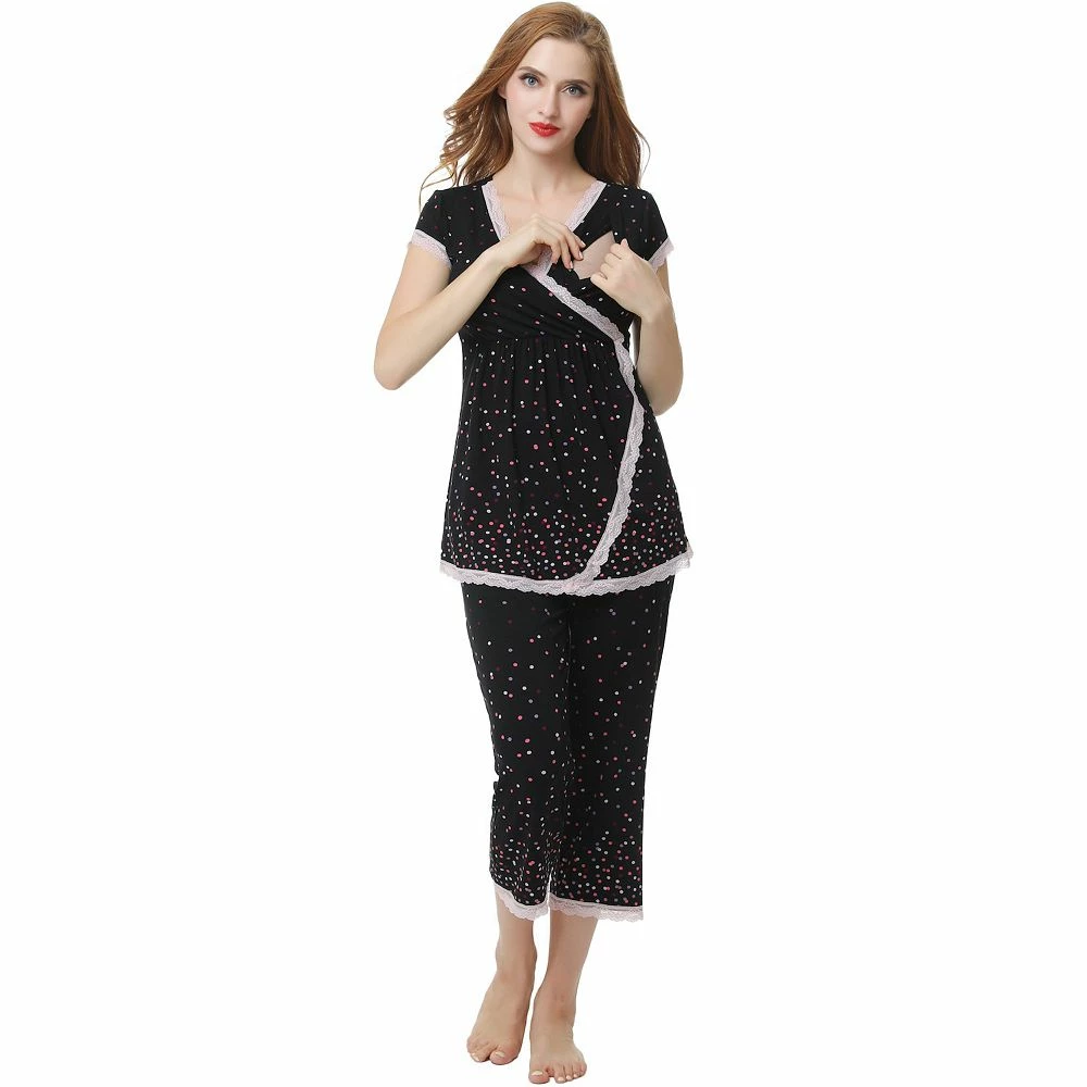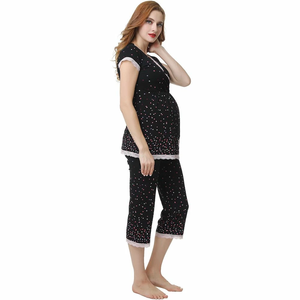 You’ll love this maternity Pokkori pajama set, featuring a nursing pajama top and capris.
