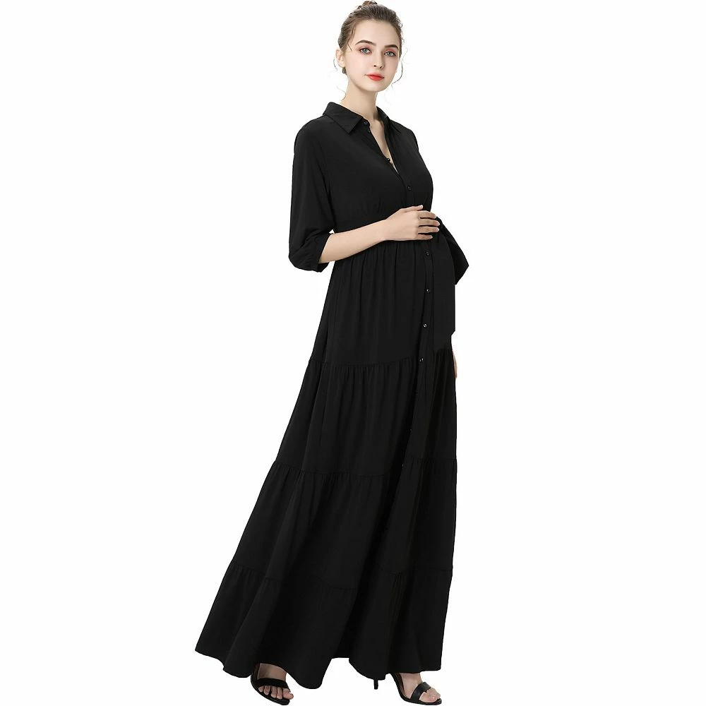 For a polished look during your pregnancy and beyond, reach for this maternity Pokkori maxi shirtdress, featuring a convenient nursing design.