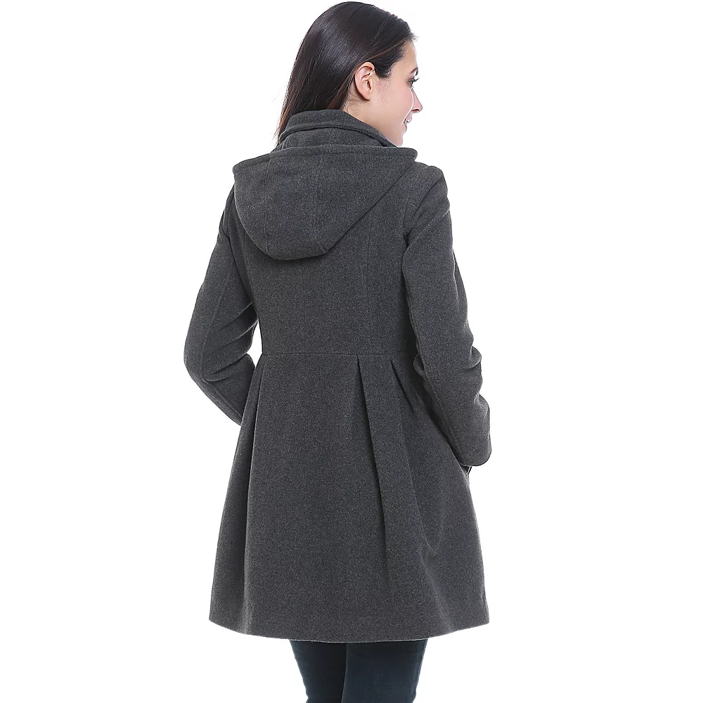 - Inverted pleats on the front and back of the coat enhances the feminine babydoll look