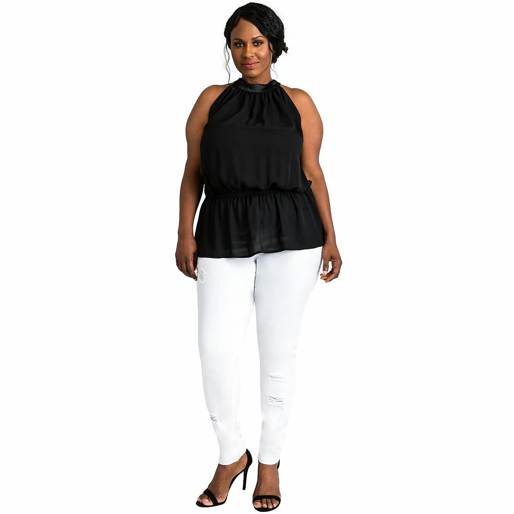 Who says you can’t wear white after Labor Day? These stretch denim plus-size skinnies are perfect for every day of the year. Lightweight stretch fabric makes them the most comfortable denim you will ever own. Pair you’re your favorite sweater knit for winter or tank for summer.