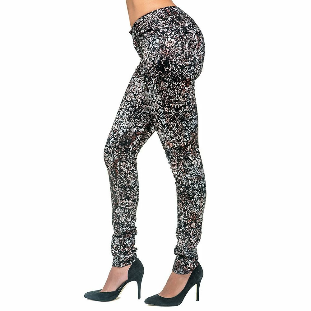 Make a statement with these baroque-inspired printed mid-rise skinny jeans. The metallic detailing makes these perfect for special occasions or for when you feel like stepping out in something other than denim.