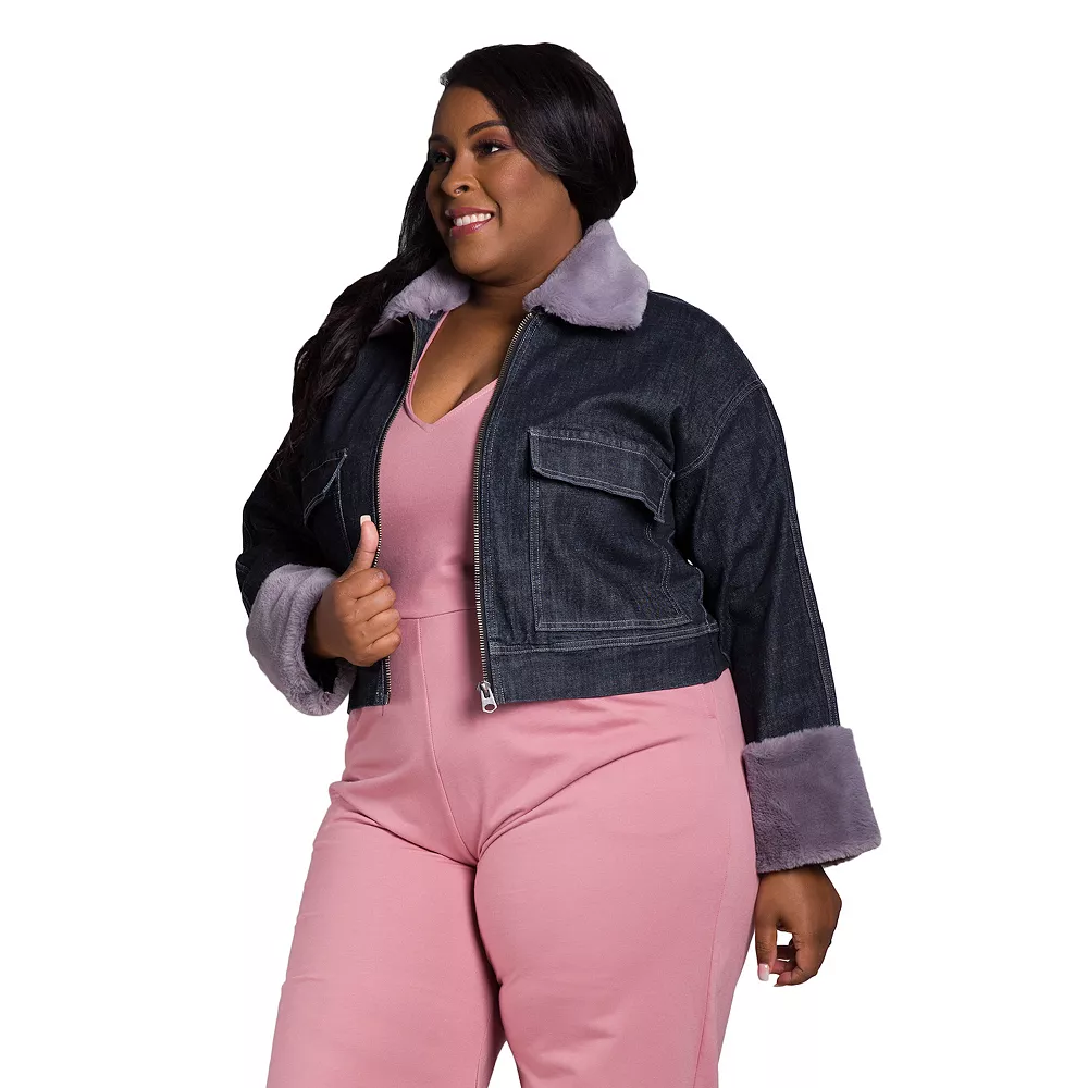 A timeless iconic Plus Size zip up trucker jacket with detachable snap faux fur, two large pockets, and a rib back hem. Paired with any style this jacket is as versatile as it gets. (The faux fur cannot be washed, unsnap it before washing)